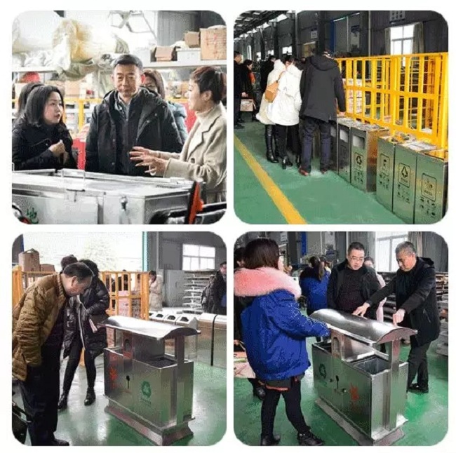 湖北弘儀電子許總、肖總熱情接待了前來考察的代表們。代表們來到車間,在肖總的帶領下,了解了分類垃圾桶等產品的生產流程,代表們對湖北弘儀電子自動化的生產設備贊不絕口。隨后,代表們隨肖總來到了樣品展示區,分別參觀了分類垃圾桶、勾臂垃圾箱、分類垃圾亭和電動垃圾車等產品。湖北弘儀電子工程師團隊給予了熱情的介紹與解答。